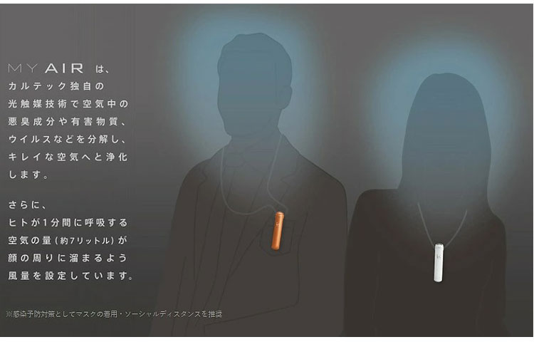 正規品取扱店 日本製 コロナ感染抑制を実証 カルテック 光触媒 空気清浄機 除菌 脱臭機 インフルエンザ 菌 ノロ タバコ ホコリ ハウスダスト お手入れ簡単 脱臭 除菌 ウイルス対策 首掛け 首かけ ターンドケイ ターンド・ケイ KL-P01 マイエアー